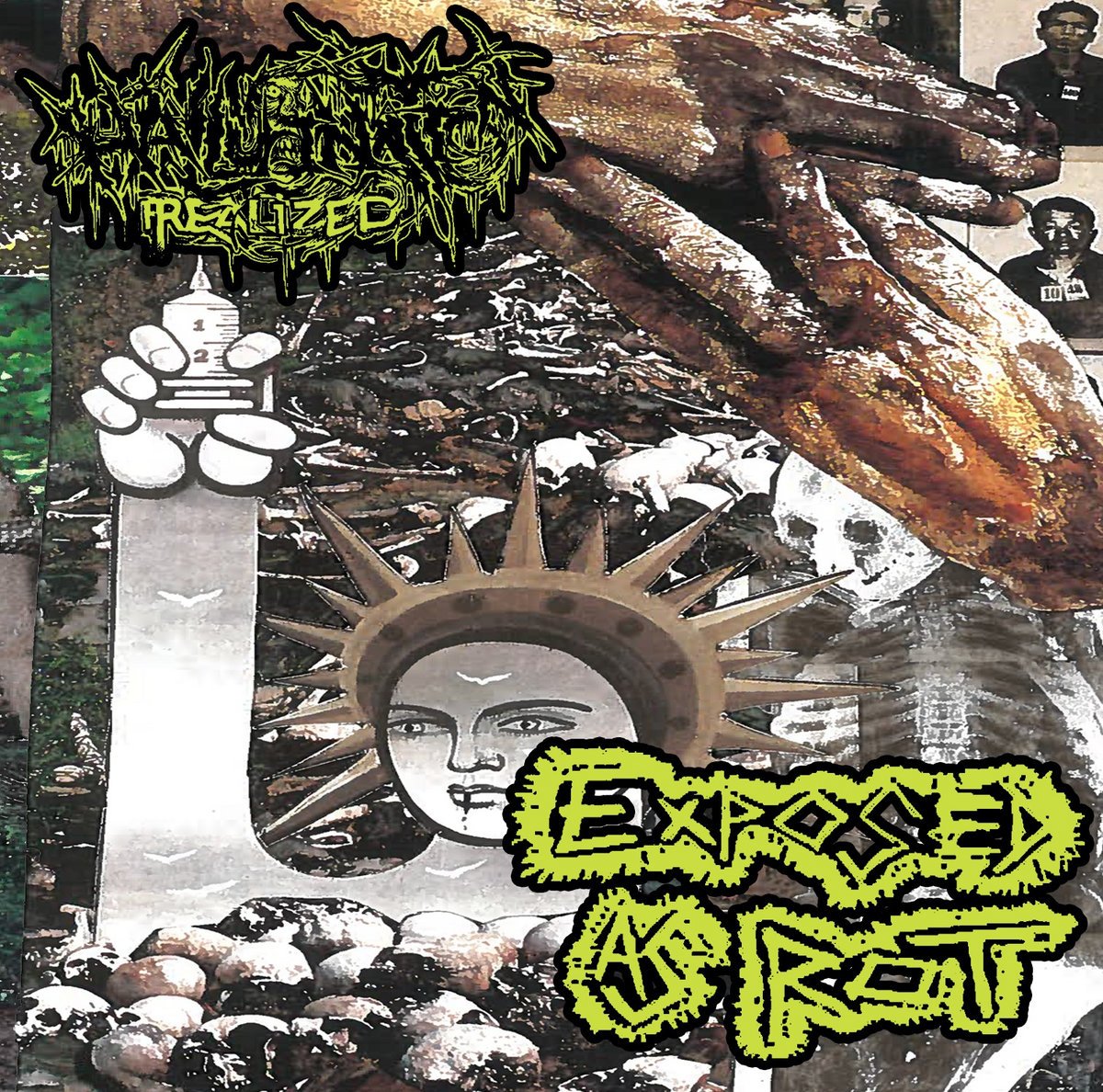 Hallucination Realized delivers 4 tracks of pure Assück worship, while Exposed As Rot's side is Deathgrind that's an odd blend of Pissgrave and 'Phantom Limb'-era Pig Destroyer.